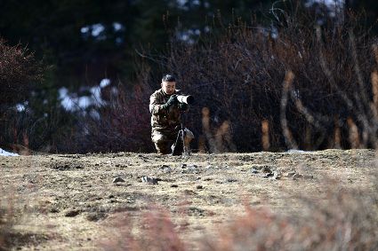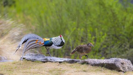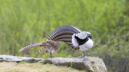 4月16日,筆者在康定市雅拉鄉(xiāng)境內(nèi),再次拍攝到國(guó)家二級(jí)保護(hù)動(dòng)物白腹錦雞求偶的清晰視頻。一只色彩斑斕的雄鳥(niǎo),拖著黑白相間的云狀斑紋尾羽,圍著雌鳥(niǎo)跳起了“圓舞曲”。整個(gè)求偶過(guò)程有十多分鐘。每年三至五月是白腹錦雞求偶期。