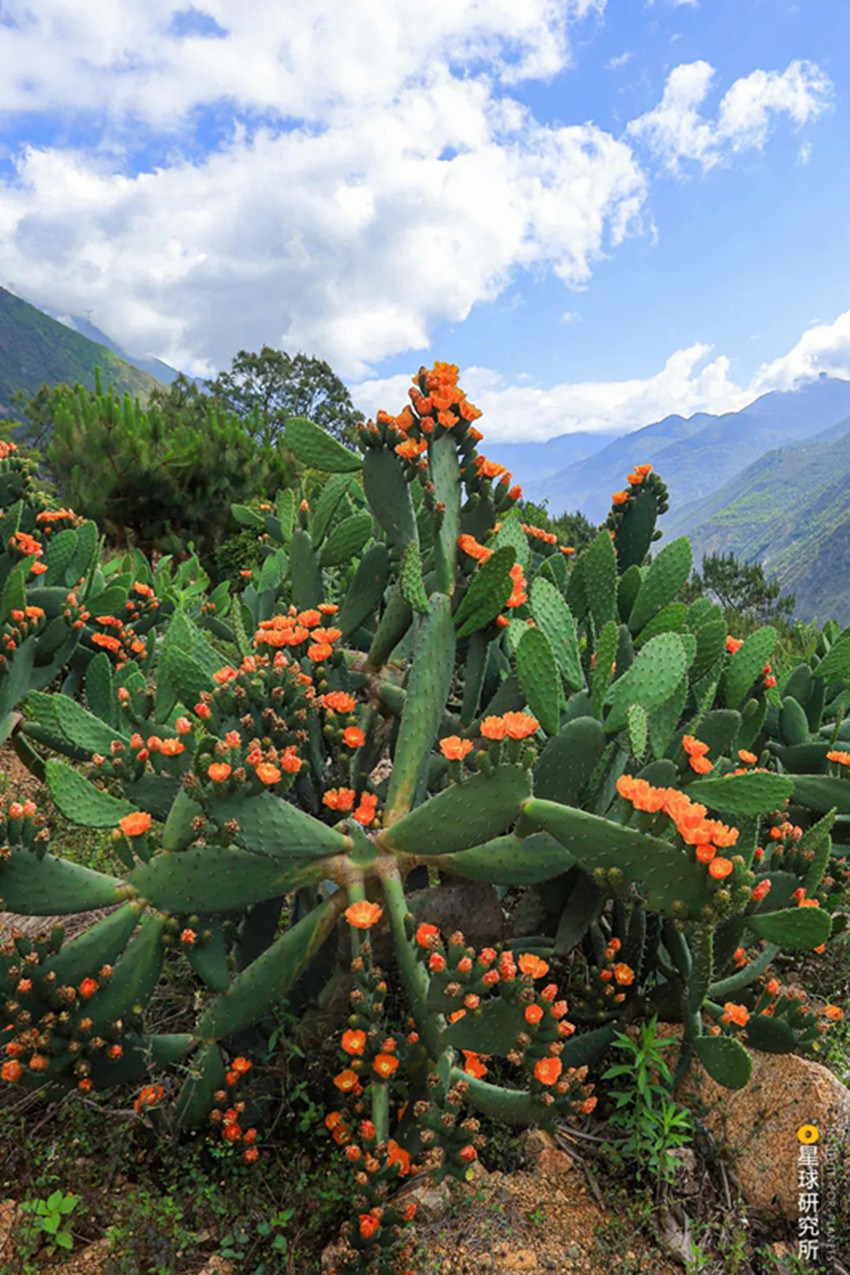 在甘孜,共有600多種野生脊椎動(dòng)物,5000多種高等植物,種類約占整個(gè)四川省的一半,如此豐富的動(dòng)植物種類,源于高山峽谷帶來的多樣的自然環(huán)境,最低處的河谷干旱溫暖,耐旱的仙人掌爬滿山坡。