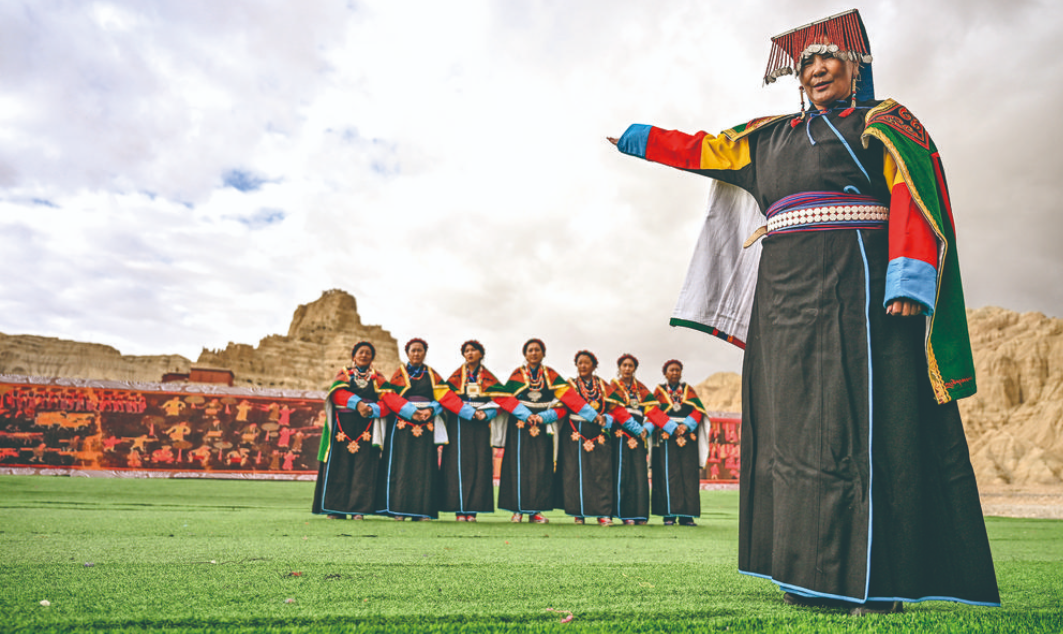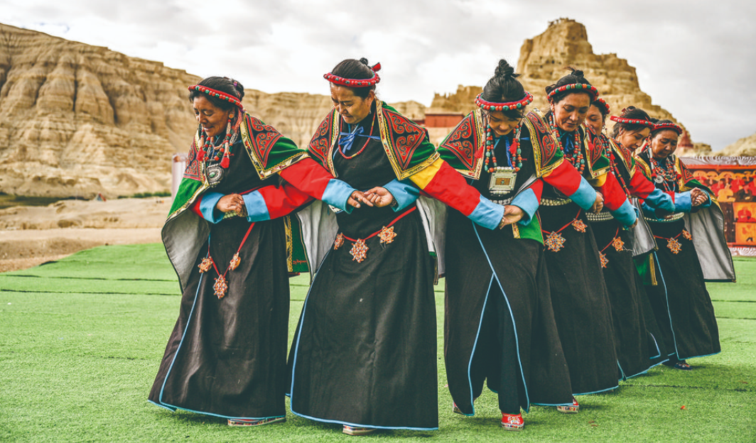 “宣舞”起源于札達(dá)縣,是西藏阿里民間傳統(tǒng)舞蹈。“宣舞”融合藏戲、舞蹈、說唱等主要的藏民族民間藝術(shù),內(nèi)容涵蓋藏民族宗教、禮儀、風(fēng)俗、節(jié)慶等各方面的內(nèi)容。2008年,“宣舞”入選第二批國家級非物質(zhì)文化遺產(chǎn)名錄。