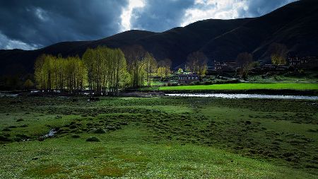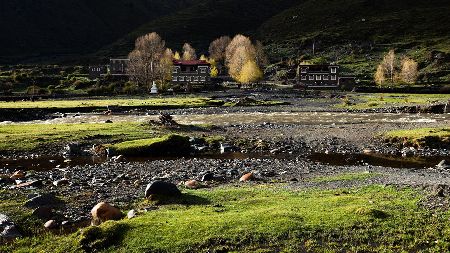 湛藍(lán)的天空下,雄鷹在盤旋,牛羊在安詳?shù)芈匠圆?,靜靜的小河在山邊蜿蜒流淌,充滿綠意的白楊樹在風(fēng)中搖曳,藏式民居不時升起縷縷炊煙,寂靜、空曠的原野深處偶爾會傳來幾聲狗叫高原的陽光又賦予這幅風(fēng)景畫凝重的色彩這樣的畫面叫人心醉,讓人留戀忘返從折多山腳下至新都橋鎮(zhèn),再至塔公草原,處處都是入畫的美景,不愧稱為“攝影家的天堂”。