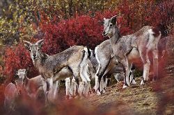 巖羊(學(xué)名:Pseudois nayaur),體型中等,形態(tài)介于野山羊與野綿羊之間。兩性具角,雄羊角粗大似牛角,但僅微向下后上方彎曲。以青草和各種灌叢枝葉為食。冬季啃食枯草。它們還常到固定的地點(diǎn)飲水,但到寒冷季節(jié)也可舔食冰雪。無固定獸徑和棲息場(chǎng)所。它們?cè)趹已虑捅谥灰幸荒_之棱,便能攀登上去。一跳可達(dá)2、3米,若從高處向下更能縱身一躍10多米而不致摔傷。冬季發(fā)情交配,次年6、7月產(chǎn)仔,每年通常只產(chǎn)1仔。主要天敵是雪豹、豺、狼,以及禿鷲和金雕等大型猛禽。中國(guó)國(guó)家二級(jí)重點(diǎn)保護(hù)野生動(dòng)物?! ?br />