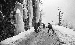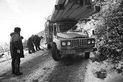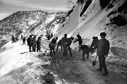 “二呀二郎山, 高呀高萬(wàn)丈, 古樹(shù)荒草遍山野, 巨石滿山崗。 康藏交通難行走, 康藏交通被它擋…… 五十年代初,《歌唱二郎山》傳遍中外,二郎山因此而聞名四海。歌詞也是昔日二郎山的真實(shí)寫(xiě)照?!?br />  一九九七年十一月二十四日,連續(xù)多日大雪,把整個(gè)二郎山裹得嚴(yán)嚴(yán)實(shí)實(shí),白茫茫一片。陣陣山風(fēng)吹過(guò),大霧就像瀑布一樣,從山頂直往下翻涌?jī)A瀉。 一大早,州交通局打冰除雪排險(xiǎn)的干部職工就從二郎山管理站直奔山埡口。載有防滑砂的大貨車(chē)穿迷霧,繞山梁,向山頂埡口疾馳。由于氣溫太低,霧又大,車(chē)上的擋風(fēng)玻璃很快就結(jié)下了冰,路面打滑非常嚴(yán)重。前面車(chē)輛堵了起來(lái),排險(xiǎn)人員只好下車(chē)步行。 大霧彌漫,能見(jiàn)度很底,陰霾的天空又飄起了紛紛揚(yáng)揚(yáng)的雪花,剌骨的寒風(fēng)陣陣襲來(lái),只聽(tīng)見(jiàn)車(chē)蓬布在風(fēng)中“嗶剝”作響,卻看不見(jiàn)前面到底堵了多少車(chē)。排險(xiǎn)人員只好相互攙扶踩著冰滑的邊路艱難地向行。好不容易來(lái)到堵在最前面的車(chē)子面前。原來(lái)是一輛載著原木的東風(fēng)牌大貨車(chē)側(cè)滑在公路上,把整個(gè)公路堵死了。 局領(lǐng)導(dǎo)當(dāng)即指揮大家用鋼釬、鐵鎬和鋤頭處理冰道,沒(méi)有撮箕,大家借來(lái)加水桶裝運(yùn)冰雪……氣溫仍在急劇下降,剛從雪堆里刨出來(lái)的路,又被結(jié)起一層冰,就像地面上澆上了油,這就是冰雪道上有名的“桐油凌”。 有二位老同志不顧年老體弱,積極參與打冰除雪,一個(gè)在打冰時(shí),被彈起的冰碴把腦門(mén)劃了一個(gè)口子,鮮血直往外冒。有人想幫他包扎,他堅(jiān)決不干,自己就用手帕按住,把帽子向下拉蓋住傷口就算了。血從手帕中浸透出來(lái),與眉毛上的冰凌結(jié)在一起。氣溫太低,冰層太厚,十字鎬每挖一下,多數(shù)情況下也就是挖下一個(gè)白點(diǎn)而已。不一會(huì)兒,另一位老同志已是滿頭大汗,大家勸他休息一下,他卻說(shuō):趁著現(xiàn)在雪不是太大,早點(diǎn)把主道上的冰雪多除點(diǎn),過(guò)往二郎山的車(chē)輛就多一份安全。 排險(xiǎn)人員的手凍紅了,刨冰雪碰傷的指頭還流著鮮血,身上蒸發(fā)的熱氣,把衣領(lǐng)口、袖子口和褲子口結(jié)成了冰,可是,誰(shuí)也沒(méi)有吭一聲。 ……受堵車(chē)輛終于向前開(kāi)動(dòng)了。 風(fēng),越刮越猛,雪,越來(lái)越大。 防滑車(chē)在冰雪道上艱難地向前爬行著,車(chē)箱上面的職工們揮舞的洋鏟向路面撒著防滑砂。一路上風(fēng)絞雪,防滑車(chē)象一頭不聽(tīng)使喚的牛,顛簸、亂竄,好不容易才來(lái)到260(二郎山最險(xiǎn)處),對(duì)這里“桐油凌”路面進(jìn)行重點(diǎn)防滑處理后,防滑車(chē)又返回來(lái),開(kāi)始向山頂進(jìn)發(fā)……風(fēng)雪二郎山上打冰除雪、防滑排險(xiǎn),看似沒(méi)有驚天動(dòng)地的壯舉,身臨其景才知其艱難辛苦。難怪當(dāng)年每每經(jīng)過(guò)二郎山冰天雪地奇險(xiǎn)路段的車(chē),都會(huì)向風(fēng)雪中屹立路邊的交通系統(tǒng)排險(xiǎn)保暢通的職工們鳴笛致敬,風(fēng)雪中的那份情彌足珍貴。 川藏線上的老司機(jī)傳下來(lái)一首傷心的順口溜:“車(chē)過(guò)二郎山,如闖鬼門(mén)關(guān),萬(wàn)幸不翻車(chē),也要凍三天!”其險(xiǎn)峻實(shí)為罕見(jiàn),尤其是途經(jīng)二郎山260(公路公樁)處,曾被淡虎色變的人稱為“鬼招手”的險(xiǎn)路段。 1983年1月3日,有著安全行車(chē)44萬(wàn)公里記錄的一位駕駛員開(kāi)著輛嶄新的東風(fēng)牌貨車(chē),同行還有兩名職工,夜行二郎山,在彌天大霧中神秘地“失蹤”了。十五天后,搜山的人才用望遠(yuǎn)鏡看到260公里路樁處的山崖下,有一塊汽車(chē)破篷布掛在樹(shù)枝,猶如招魂的凄厲幌幡在冷風(fēng)中招搖晃動(dòng)。鋼纜繩吊著搜山的人下到崖下400米深處的谷底。扒開(kāi)一座座雪堆,叫人汗毛倒豎:雪堆下,盡是廢大梁、爛車(chē)廂、銹車(chē)頭和支離破碎的汽車(chē),足有一個(gè)汽車(chē)連!一輛不知埋了多久的卡車(chē)廂里牛肉已腐爛,駕駛室里坐著三具發(fā)黑的僵尸……其狀慘不忍睹!