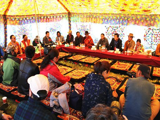 來自美國、蒙古、北京、甘肅、青海等地的43位格薩爾文化學術(shù)專家、說唱藝人參加了紅原和色達的活動。此次學術(shù)考察紅原和色達的活動是2015年全國“格薩爾故里行”“四川省兩州(甘孜州色達縣、阿壩州紅原縣)一地(成都市)”年度重要活動組成部分。在紅原活動現(xiàn)場,進行了開幕式、“靈韻紅原·多彩馬背”主題文藝匯演和格薩爾山水傳說實地考察研討三項活動。我州色達縣舉行了包括“色達格薩爾文化藝術(shù)中心落成典禮暨2015格薩爾故里行——草原詩韻活動”、“參觀格薩爾文化藝術(shù)中心”、“2015格薩爾故里行——草原詩韻專場演出”、“格薩爾文化專題研討會”、“觀賞色達格薩爾傳統(tǒng)藏劇目”等在內(nèi)的系列活動。