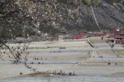 四月的康南大地,處處花紅柳綠、綠意盎然。在巴塘縣,一棟棟紅色的藏房掩映在青山綠水間,勤勞的人們正在忙著播種,一壟壟覆蓋著薄膜的土地,成了這個(gè)季節(jié)最美的畫(huà)卷。在得榮縣因都?jí)?,田野被染成了讓人心醉的黃色,葡萄又吐出了新綠。一場(chǎng)春雪悄然而至,將太陽(yáng)谷的大山變成了白色。在鄉(xiāng)城,大地已經(jīng)開(kāi)始變得熾熱起來(lái),遠(yuǎn)處的白藏房成了陽(yáng)光下的最美風(fēng)景。