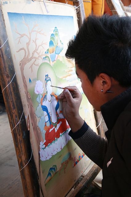 在河坡國家級非遺傳承河坡手工藝傳習(xí)基地及麥宿創(chuàng)辦的27個手工藝班中,你可以親眼目睹銅鑄、唐卡、藏刀、黑陶、牛羊毛絨編織、木雕、藏香、金銀加工、縫紉等藏傳手工藝制品的全過程及工藝大師們精湛的手工技藝;你可以欣賞世界級的工藝精品而被陶醉;你可以選購或定做心悅的工藝品而不亦樂乎;你可以細(xì)心領(lǐng)會“教”與“學(xué)”是怎樣在這里達(dá)成完美融合而驚奇。你會被這里的非遺物質(zhì)文化遺產(chǎn)項目技藝代表性傳承人“一生做好一件事”的堅守精神所感化,被他們不計名利、無私奉獻(xiàn)的品格所融化;你會被這里淳樸的民俗所吸引而流連忘返……