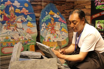 本屆非遺節(jié)期間,我州特色展館向游客展示了格薩爾彩繪石刻、藏族金屬鍛造技藝、藏文書法、噶瑪嘎孜畫派唐卡、阿西土陶燒制技藝、藏族牛羊毛編織技藝,南派藏醫(yī)藥等國家級、省級非遺項目。在歷時9天的活動中,我州的非物質(zhì)文化遺產(chǎn)傳承人帶來了數(shù)百件非遺手工藝精品。大量的手工藝商品聚集展館的展示區(qū),供參觀者挑選,有些非遺傳承人還在現(xiàn)場為顧客現(xiàn)場制作作品,向廣大參觀者展示了民族手工藝的制作流程。