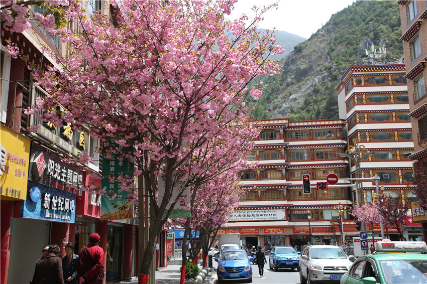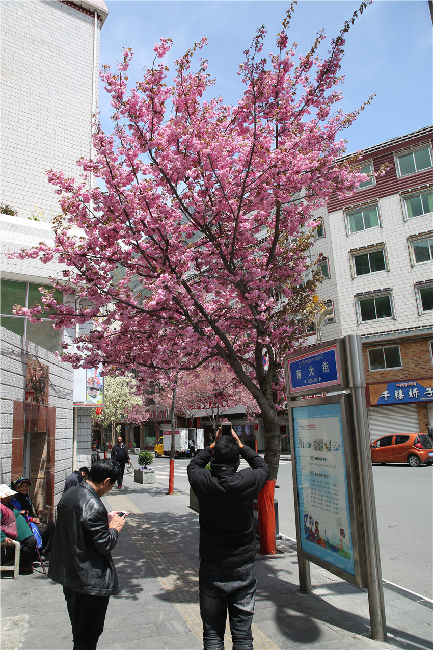 當春天遇見最美的櫻花時,驚艷了整個康定。櫻花與身邊人都將成為春日里的浪漫風景。櫻花之美,美在氣勢,櫻花紛飛,夢幻唯美。每年4月中旬,康定城北門的櫻花綻放后,人們像是約好了一樣聚集到這里,共赴這一場甜美盛宴。這一路繁花似錦,人們穿過枝椏花正盛的櫻花林,穿過粉色海洋,徑直奔向一個浪漫的童話,一路櫻花飄散,一路粉光燦爛。櫻花絢麗繽紛、陸續(xù)綻放,若恰逢一陣春風經(jīng)過,櫻花瓣隨風舞動,猶如紛落的雪花,空氣中浮動著櫻花特有的淡淡香氣,令人不禁懷疑自己置身夢境?!翱刀ǖ拇禾靵淼靡硪恍?,綻放的櫻花,滿街的花草,折多河畔楊柳依依,康定的春天無比驚艷,醉了游人。”周先生一邊拍照,一邊感嘆,他在康定生活了40多年,20年前的康定,可以說找不到像樣的花草樹木,進入新時代,康定城市變美了,城市綠化走在了前面,城市的美譽度舒適度不斷提升??刀ㄖ?,春色滿園,姹紫嫣紅,風光旖旎。