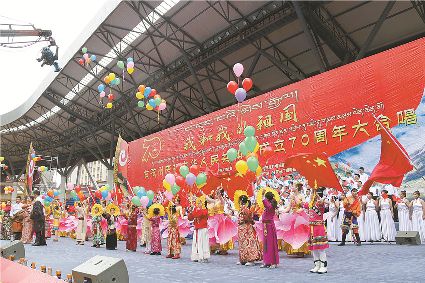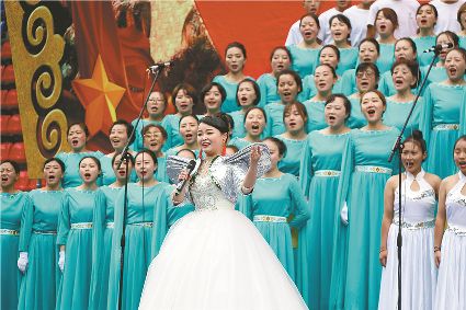 宣傳文化系統(tǒng)代表隊(duì)演唱《唱支山歌給你聽》。