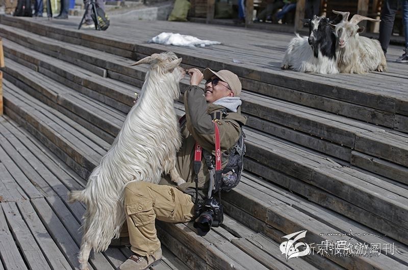在神山腳下,佛教徒放生的一些山羊和游客親密無間。