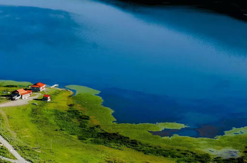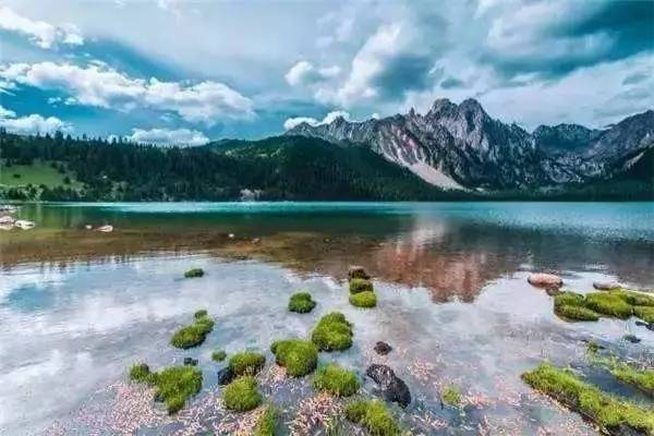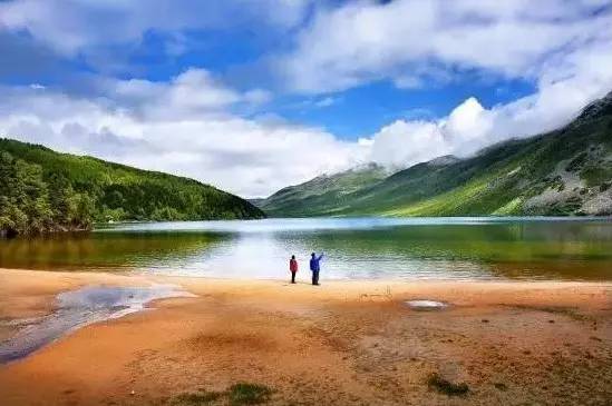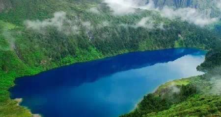 被原始森林和草甸環(huán)抱的五須海,當(dāng)?shù)厝擞鳛椤跋膳釆y的明鏡”,湖水碧綠透亮,將周圍的山水和天空全映照在湖面,幽靜的像一幅畫。從夏到秋周圍百花盛開,古樹盤根錯(cuò)節(jié)、藤枝攀沿纏繞,杜鵑樹伸向湖面,仿佛進(jìn)入原始古樸的仙境。