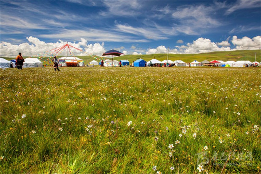 拉日馬大草原,藏語譯為神仙居住的地方,寬闊的草原、豐茂的水草、茫茫的-、蜿蜒清澈的拉曲河,構(gòu)成的一幅天然畫卷。加之當?shù)啬撩窦儤愕拿耧L、散落在草原上星星點點的牛群、帳篷,給人一種回歸之感。倘若是在夏季,草原上成為花的海洋,四處飄溢著花的芬芳和奶香,在醉人的季節(jié)里,定會使人留連忘返。