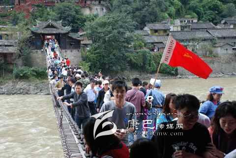 瀘定橋始建于清康熙44年 (1705年),次年五月竣工,康熙御筆題名“瀘定橋”。橋身共由13根鐵鏈組成,其中底鏈九根,扶手四根。橋東西兩端各有橋臺一座,西端觀音閣下有康熙題寫之《瀘定橋》石碑,橋東有《御制瀘定橋碑記》,瀘定橋是大渡河上第一座穩(wěn)固的大鐵索橋。1935年中國工農(nóng)紅軍晝夜行軍240里,英勇飛奪瀘定橋,打開了北上抗日的通道,“十三根鐵鏈托起了一個(gè)共和國”,毛澤東同志為此寫下了“大渡橋橫鐵索寒”的壯麗詩句,瀘定橋自此名揚(yáng)四海,成為中國紅色第一橋。為紀(jì)念紅軍飛奪瀘定橋這一壯舉和奇跡,于1985年在沙壩建立了“紅軍飛奪瀘定橋紀(jì)念館”和紀(jì)念碑。紅軍飛奪瀘定橋紀(jì)念碑由鄧小平同志題寫碑名,聶榮臻元帥題寫碑文。紅軍飛奪瀘定橋紀(jì)念館收集了紅軍飛奪瀘定橋時(shí)用過的門板、槍、炮、紅軍的旗幟、文件箱、信件證明、標(biāo)語、戰(zhàn)報(bào)、手雷、馬刀等珍貴文物110余件以及177幅歷史照片。瀘定橋是全國首批重點(diǎn)文物保護(hù)單位,是國家重點(diǎn)培育的 “紅色旅游區(qū)”、重點(diǎn)組織規(guī)劃的 “紅色旅游精品線路”和重點(diǎn)建設(shè)的 “紅色旅游經(jīng)典景區(qū)”。