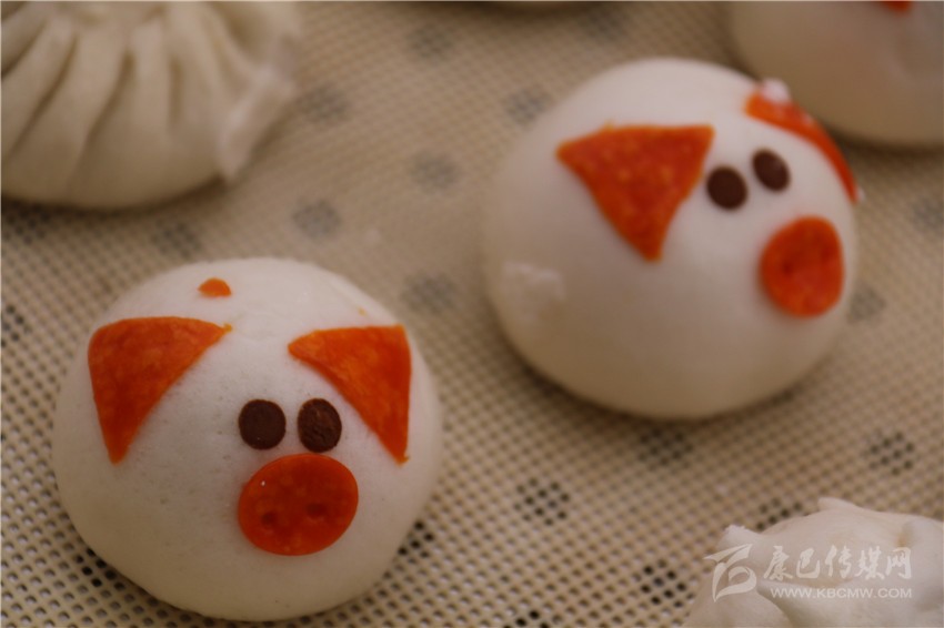 “這個(gè)包子也長(zhǎng)得太可愛(ài)了吧!”記者順著旁邊的驚呼聲看去,五歲的肖紅拿著一個(gè)做成小豬樣的包子對(duì)著她奶奶說(shuō)。趕緊走近店里,記者也來(lái)了份兒奶黃餡兒的卡通小豬包子,一口咬下,奶黃順著缺了的口子流出來(lái),趕緊吸了一口,甜甜的味道瞬間在舌尖化開(kāi)。為了滿足記者的好奇心,老板介紹說(shuō):“將面團(tuán)捏好搟薄,再包入餡,收口朝下,像包包子那樣捏好口,捏出有點(diǎn)像豬的型狀,再撕一點(diǎn)黃色面團(tuán)做個(gè)豬鼻子,用一根筷子按下去成兩個(gè)鼻孔,再捏兩只耳朵和一根尾巴,準(zhǔn)備些黑芝麻,做眼晴,拿根筷子點(diǎn)點(diǎn)水沾一個(gè)芝麻放在豬身上,可愛(ài)的卡通小豬包就做好了?!钡赇伹皵D滿了小朋友,老板告訴記者:“這種卡通包子之所以受小朋友的喜歡不僅是因?yàn)槠淇蓯?ài)的卡通外表,而且我們所有的卡通包子餡兒都是甜的。我們精準(zhǔn)定位,投孩子們所好,取得的成效還不錯(cuò)。這次來(lái)參加美食節(jié),只帶來(lái)了小豬和刺猬兩種卡通形象的包子,賣(mài)得挺好,準(zhǔn)備在接下來(lái)的幾天將小猴子等卡通形象的包子也帶過(guò)來(lái)?!?/p>