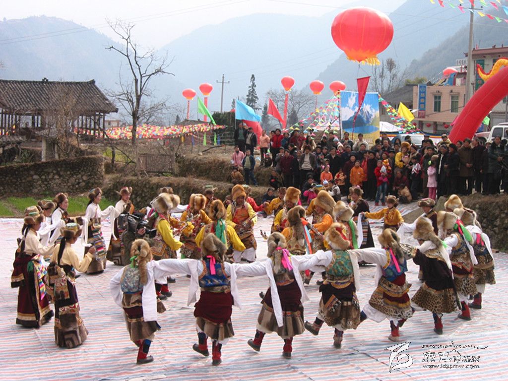 從初二開始,親朋好友才相互拜賀,共慶新年。圍跳鍋莊,“鍋莊”——藏族的民間舞蹈。在節(jié)日或農(nóng)閑時(shí)跳,男女圍成圓圈,自右而左,邊歌邊舞。“果桌”——鍋莊舞,早期與西藏奴隸社會(huì)和盟誓活動(dòng)有關(guān),后來(lái)逐步演變成為歌舞結(jié)合,載歌載舞的圓圈歌舞形式了?!肚迨犯?middot;樂志》音譯為“郭莊”,近代有稱“歌莊”,唯《衛(wèi)藏通志》說(shuō)它是圍著支鍋石樁而舞的意思?!段鞑匚璧父耪f(shuō)》載:以前的康定一帶,有一種商業(yè)性組織叫“鍋莊”,這類商行收購(gòu)?fù)廉a(chǎn),代辦轉(zhuǎn)運(yùn)設(shè)有客棧,沿途過(guò)往的藏族商賈常聚集宿居其中。晚上,在院內(nèi)曠地壘石支鍋熬茶抓糌粑,茶余飯后不時(shí)圍著火塘歌唱跳舞,以驅(qū)一天的勞累與疲乏,保持旺盛的精力,適應(yīng)惡劣環(huán)境。