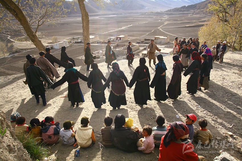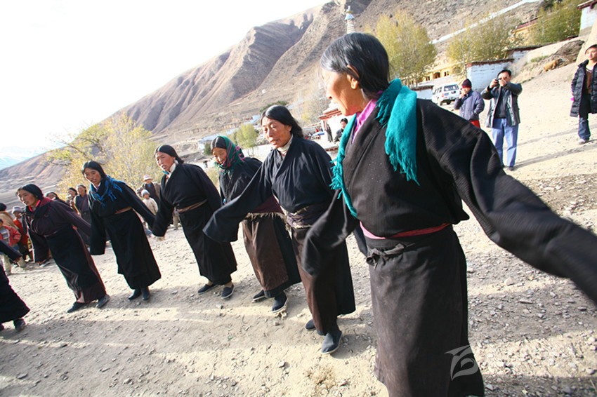 弦子又名為“協(xié)”,在甘孜縣境內(nèi)有孔薩協(xié)欽、仲薩協(xié)、格達(dá)協(xié)、郎扎協(xié)等,其中白利寺五世格達(dá)活佛創(chuàng)建于二十世紀(jì)三、四十年代的格達(dá)弦子尤為著名,跳此舞無時間規(guī)定。起初用此歌祭祀亡魂、超度靈魂、免荒災(zāi)。以后逐漸豐富其內(nèi)容而流傳于民間。表演時無伴奏樂器,起舞時,男女兩隊輪歌共舞,圍成圓圈,相對而立,男女舞者統(tǒng)一著樸素藏裝,男舞者抬頭,頭戴金氈帽, 身著“氆氌”衣,但不配戴腰刀;女舞者低頭,扎小辮子,身著“氆氌”衣,腳穿藏鞋,沿著弧線,先慢后快,邊歌邊舞,舞蹈的腳步動作矯健,帶有“夏卓”的風(fēng)韻。格達(dá)活佛的詩歌,具有藏族文學(xué)的新內(nèi)容和新思想,每當(dāng)節(jié)日人們就在優(yōu)美的旋律中盡情起舞,格達(dá)弦子的詞、曲均由格達(dá)活佛創(chuàng)作。