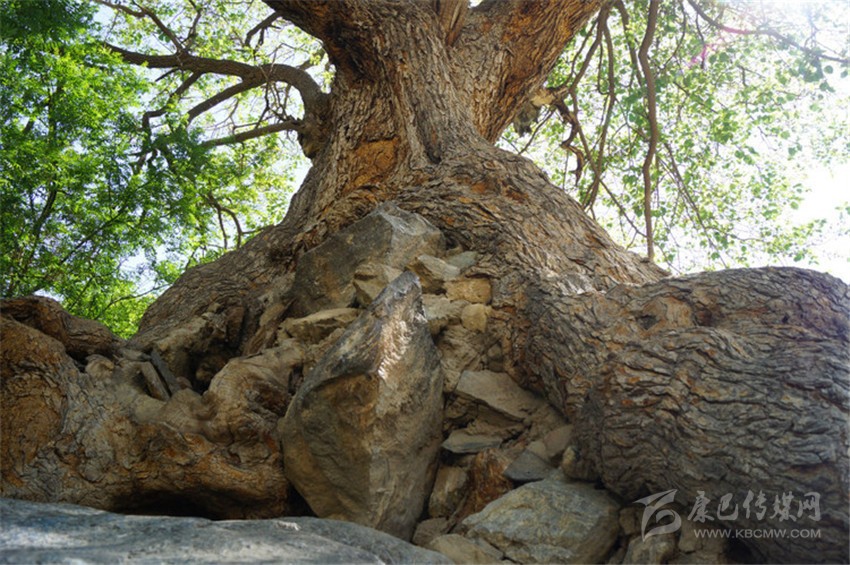站在藏寨中間,遠(yuǎn)遠(yuǎn)就可以看見(jiàn)那棵枝繁葉茂的桑樹(shù)拔地而起,覆蓋住了幾百平米的大地,近了近了,眼前的樹(shù)和石頭清晰的出現(xiàn)在面前,在一塊高約三米的巨石上,長(zhǎng)著一株高達(dá)10余米的桑樹(shù),樹(shù)冠掩映著200多平米的地面。在這棵樹(shù)下,能真切的感受到“廳前多古樹(shù),有拏云攫石之勢(shì)”之意境。桑樹(shù)的主根深入石縫之中,而幾支碗口粗的側(cè)根則在石面上攀爬,將整塊石頭嚴(yán)嚴(yán)實(shí)實(shí)地包裹起來(lái),有的側(cè)根直接伸進(jìn)石塊底部的土地里,而有的側(cè)根則鉆進(jìn)狹小的石縫中,由于受到石片的擠壓,原本粗壯的樹(shù)根呈現(xiàn)扁平狀,一旦脫離了石縫的夾裹,樹(shù)根變得遒勁有力,猶如蛟龍出水。這些樹(shù)根在巨石上盤(pán)根交錯(cuò),組成一個(gè)整體,就像是一個(gè)巨人,盤(pán)膝而坐。往上,桑樹(shù)枝干與樹(shù)根一樣旺盛,黑色的樹(shù)皮布滿了裂紋,仿佛是歲月的皺紋。樹(shù)干之間有幾個(gè)大小不一的樹(shù)洞,里面裝填著白色的石塊,據(jù)說(shuō),這是信徒們將自己的心愿附注在白石上,希望借助神樹(shù)之力送達(dá)天庭。再往上,可以看見(jiàn)在枝干上的分叉處,猛地一下涌出許許多多多鮮活的枝葉,透露出綠綠的光芒。越往上,枝椏越密,厚厚的枝葉便疊加在一起,組成綠葉搭建的棚頂。在這高大茂盛的桑樹(shù)里,雖然沒(méi)有桑椹可食,然而因?yàn)橛芯G葉樹(shù)叢的庇護(hù),這里儼然成了鳥(niǎo)雀的天堂,各色鳥(niǎo)雀便棲息在樹(shù)枝間,發(fā)出愉悅的歌聲,張開(kāi)靚麗的羽翅,在樹(shù)叢里你追我趕,上下飛舞,對(duì)不速之客仿佛并不在意,有時(shí)候落下來(lái),在地面上啄食祭祀時(shí)所灑落的青稞、麥粒等糧食,接著又撲閃著翅膀飛向樹(shù)巔。
