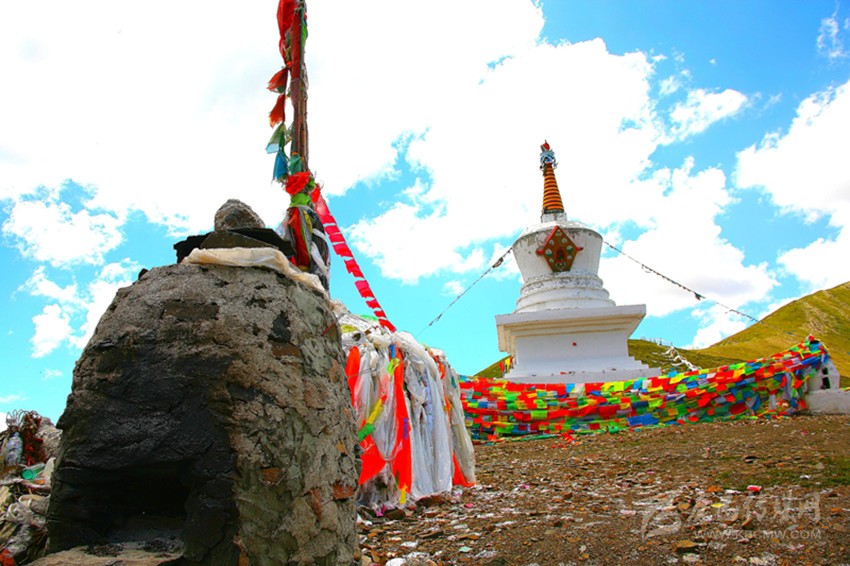 藏族幾乎全民信仰藏傳佛教。折多山上下四周,山頂河谷到處飄揚(yáng)著五色經(jīng)幡,或者印以文字,或者繪以圖案。經(jīng)幡五色,依次是藍(lán)、白、紅、綠、黃,藍(lán)色象征藍(lán)天,白色象征白云,紅色象征火焰,綠色象征綠水,黃色象征大地。五種顏色代表生命賴以存在的基礎(chǔ)。世代生活在高原上的人們對大自然的變化尤其敏感,故企盼大自然風(fēng)調(diào)雨順,人間太平幸福。佛教慰藉了他們的靈魂,經(jīng)幡寄托了他們的希望。