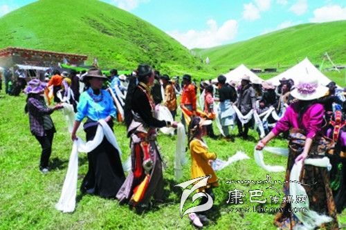 剛走進(jìn)宗塔壩子,記者便意識(shí)到一個(gè)人想象力的貧乏,現(xiàn)實(shí)中的宗塔草原以一種與眾不同的美把一個(gè)人的目光悄悄托起。四周長(zhǎng)滿(mǎn)牧草的小山像溫順的花瓣,靜靜包裹著那一片平坦的壩子,如果一個(gè)人眺望的目光足夠高足夠遠(yuǎn),山和壩子的造型會(huì)讓人聯(lián)想到一朵蓮花,而壩子里小點(diǎn)般的帳篷就像一顆顆蓮子,世世代代的宗塔人便在這蓮花般盛開(kāi)的天地里穿行、繁衍生息。
