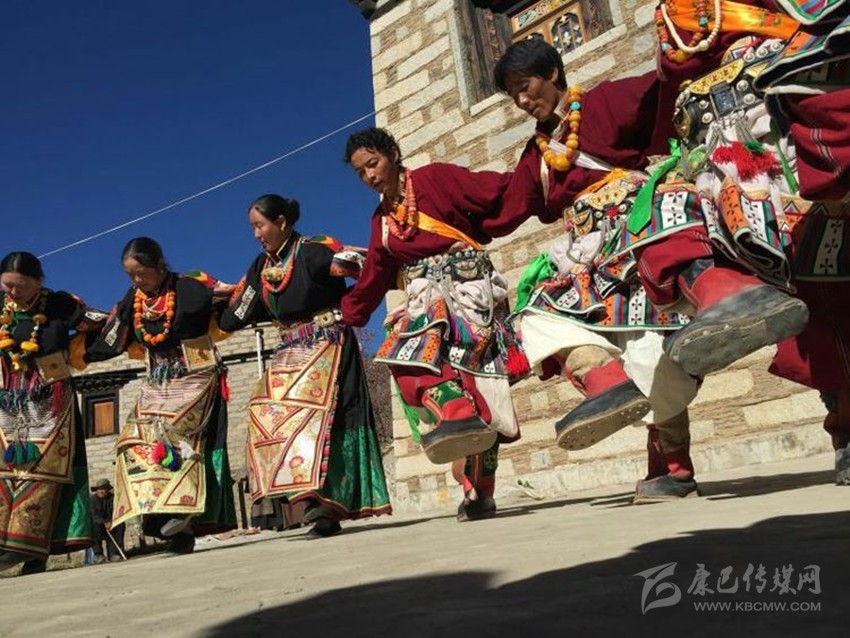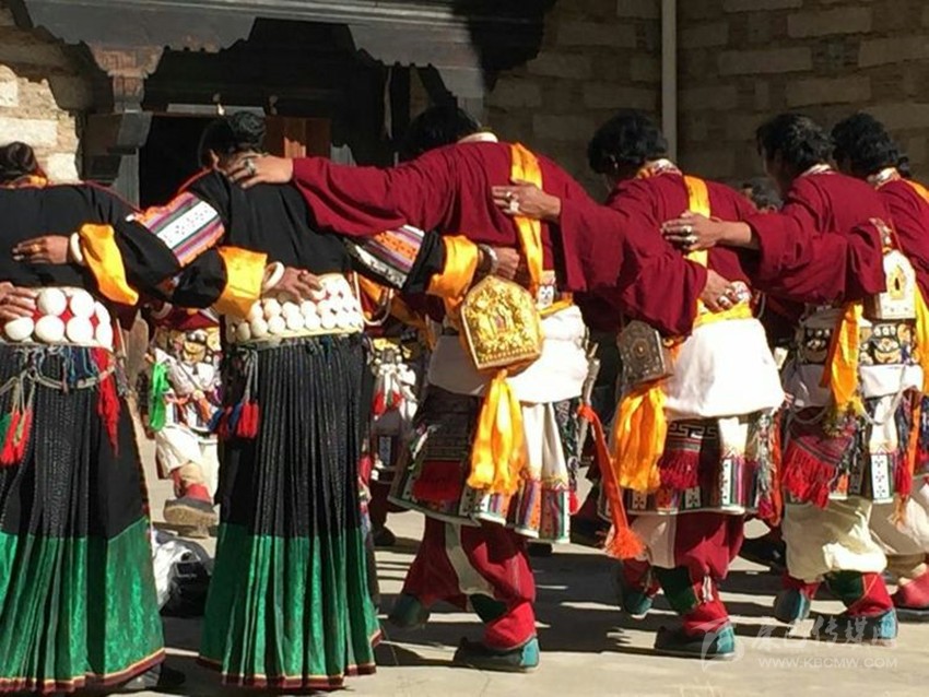 稻城蒙自鍋莊古樸典雅,表演時分男女兩隊輪唱輪舞。舞蹈時相互牽手或扶腰,低首俯身,舞姿低矮,上身動作較小,主要動作集中在腿部的踏地和靠腿。