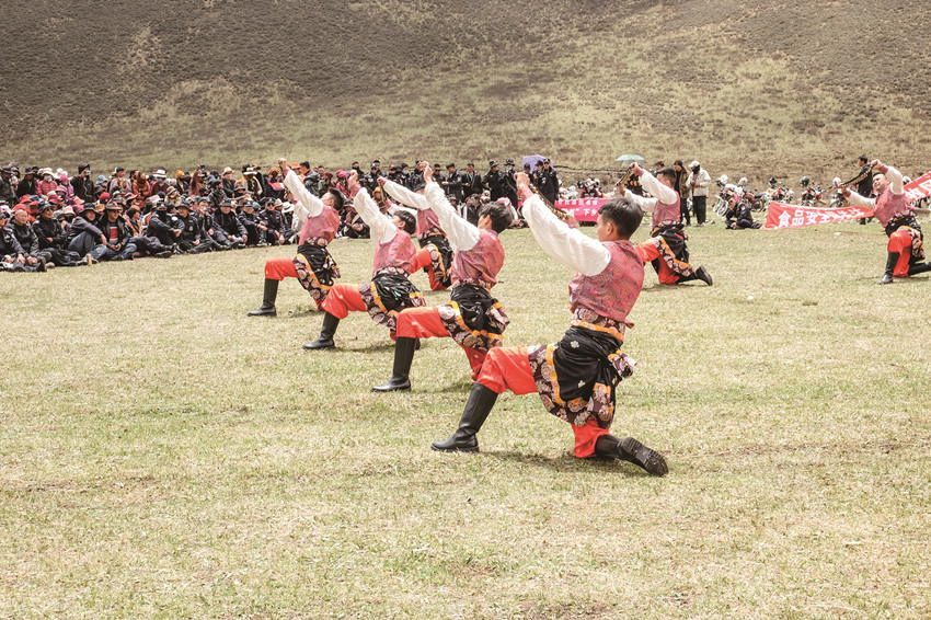 這個演出隊(duì)匯集了當(dāng)時縣上最優(yōu)秀的踢踏舞者,在那里我認(rèn)識了陳幫文、洛呷、伍伯康、貢布、絨波、俄洛啟加等,那真是一批踢踏舞的精英,每當(dāng)音樂響起,你就看他們那翻飛的腳步如流動的浪花,酣暢淋漓,激情四射。