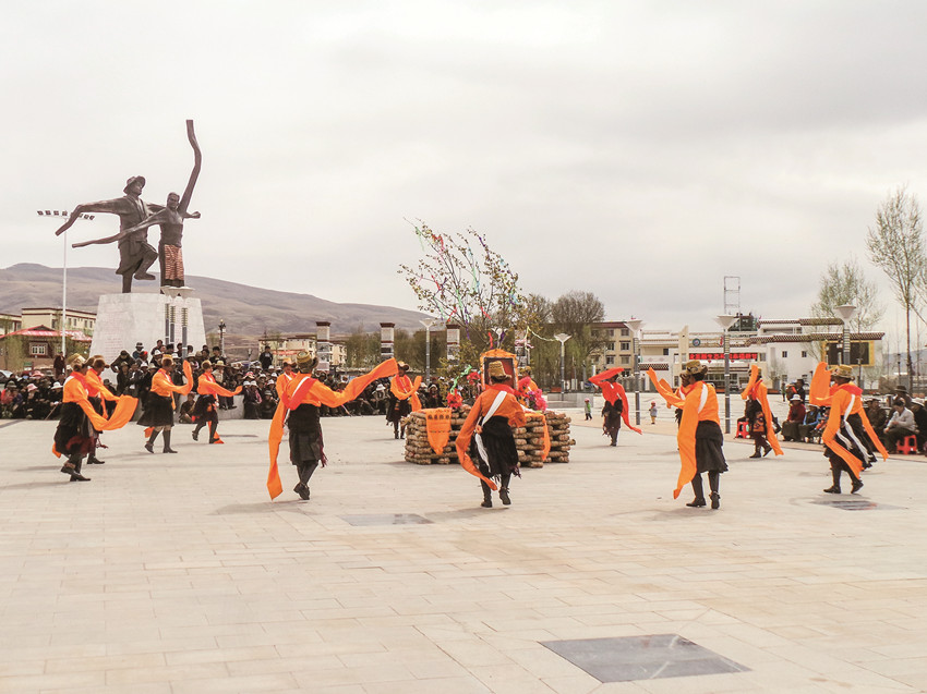 陳幫文是1945年出生的,按藏族對年齡的計(jì)算,加一年母腹中的時間,他今年就是79歲了,自從退休,我已經(jīng)好多年沒有見到他,聽說他已經(jīng)是國家級非物質(zhì)文化遺產(chǎn)“甘孜踢踏”的傳承人,曲指算來,確實(shí)該他,沒有人比他更有這個資格。其實(shí)再早,還有幾位老師的,那踢踏也是跳得出神入化,如益西降措、朱橋生等,可惜早已作古,他們大約算是新中國成立后的第一批甘孜踢踏的傳承人。那個時候他們成立了一個“翻身農(nóng)奴宣傳隊(duì)”,甘孜踢踏當(dāng)然最能體現(xiàn)當(dāng)時翻身農(nóng)奴的心情,一曲由趙然老師編的“打土巴”,直接演到了北京城,這是甘孜踢踏第一次走出大山,揚(yáng)名全國,之后便是陳幫文這批人了,薪火相傳,賡續(xù)不斷,讓甘孜踢踏踏出了一條康莊大道。那年,甘孜州建州60周年,甘孜縣來了100多位藏族小學(xué)生,當(dāng)他們在州府康定街頭跳起歡快的踢踏時,那熟悉的旋律,那整齊的步伐,那昂揚(yáng)的朝氣,那宏大的場面,竟讓我一時不能自已,情不自禁的流下了激動的淚水。