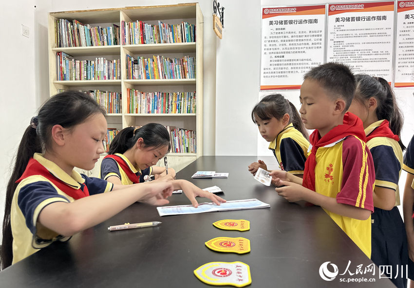 5月31日,南充市嘉陵區(qū)之江小學(xué)“美習(xí)銀行”,學(xué)生們在儲存“美習(xí)幣”。人民網(wǎng)記者 王波攝