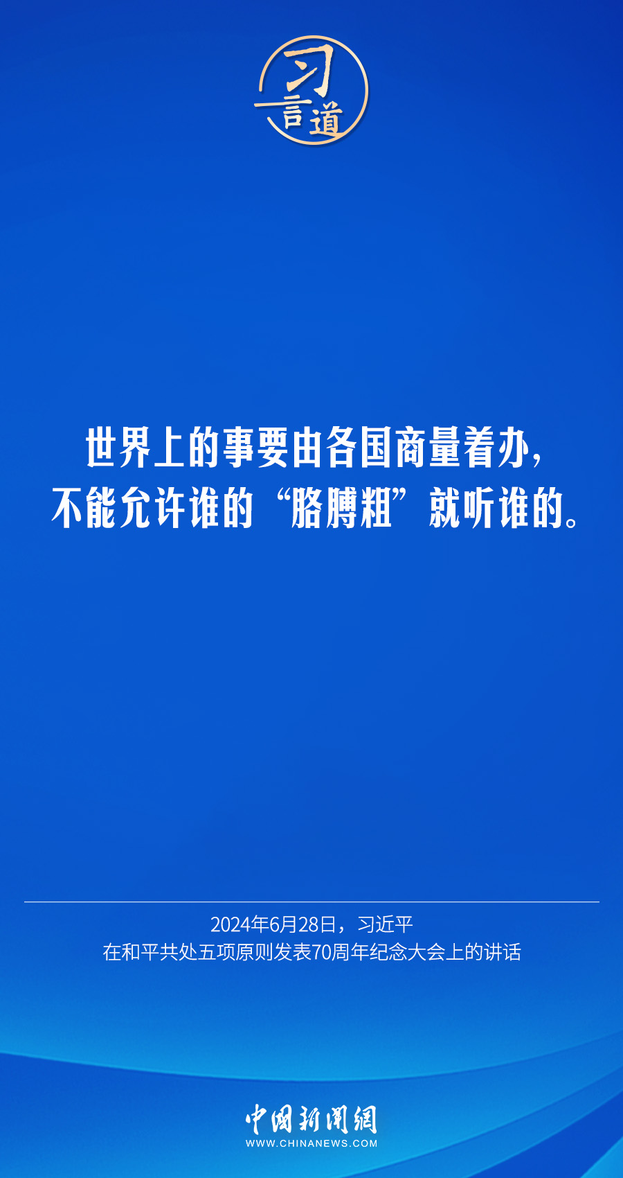 6月28日,國家主席習(xí)近平在北京人民大會(huì)堂出席和平共處五項(xiàng)原則發(fā)表70周年紀(jì)念大會(huì)并發(fā)表重要講話。習(xí)近平指出——