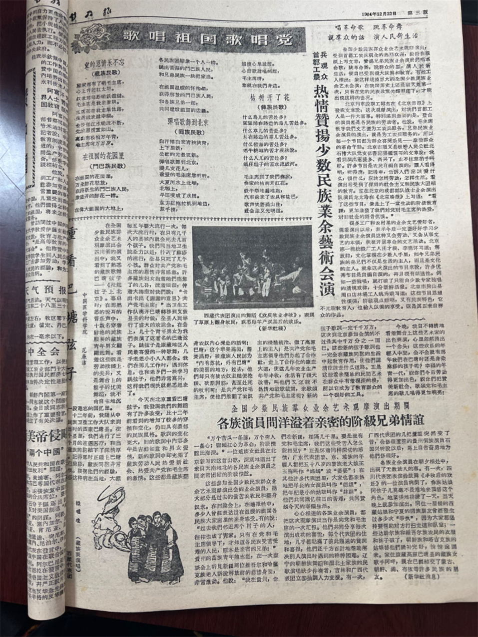 一個地方,因一段歷史而被人銘記;一段記憶,因一抹紅而歷久彌新。翻開1964年12月22日的《甘孜報》第三版,刊發(fā)了文章《重看巴塘弦子》。作者在全國少數(shù)民族群眾業(yè)余藝術(shù)觀摩演出會四川省的演出中,又看到了熟悉的藏族歌舞,想起了自己在12年前參加巴塘縣巡回醫(yī)療,和藏族同胞結(jié)下了深厚情誼的故事。