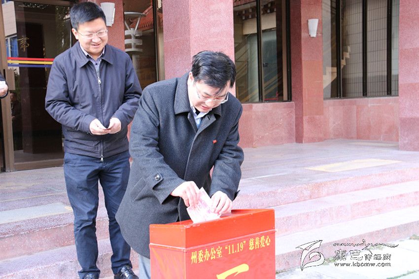 募捐儀式上,胡昌升對州委辦公室干部職工積極踴躍參與愛心慈善活動給予了充分肯定,并希望全州廣大干部職工和社會各界愛心人士要大力弘揚“甘以愛人、孜求慈善”的甘孜愛心慈善精神,積極參加到“11·19愛心慈善一日捐”活動中來,為全州困難群眾伸出援手、獻上愛心、作出貢獻。