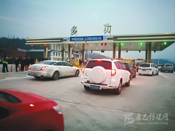 2017年12月31日下午5時(shí)許,在雅康高速多功收費(fèi)站外,雖然高速尚未開(kāi)通,二十余輛小轎車已排起了隊(duì),等待駛?cè)胙趴蹈咚佟?/p>