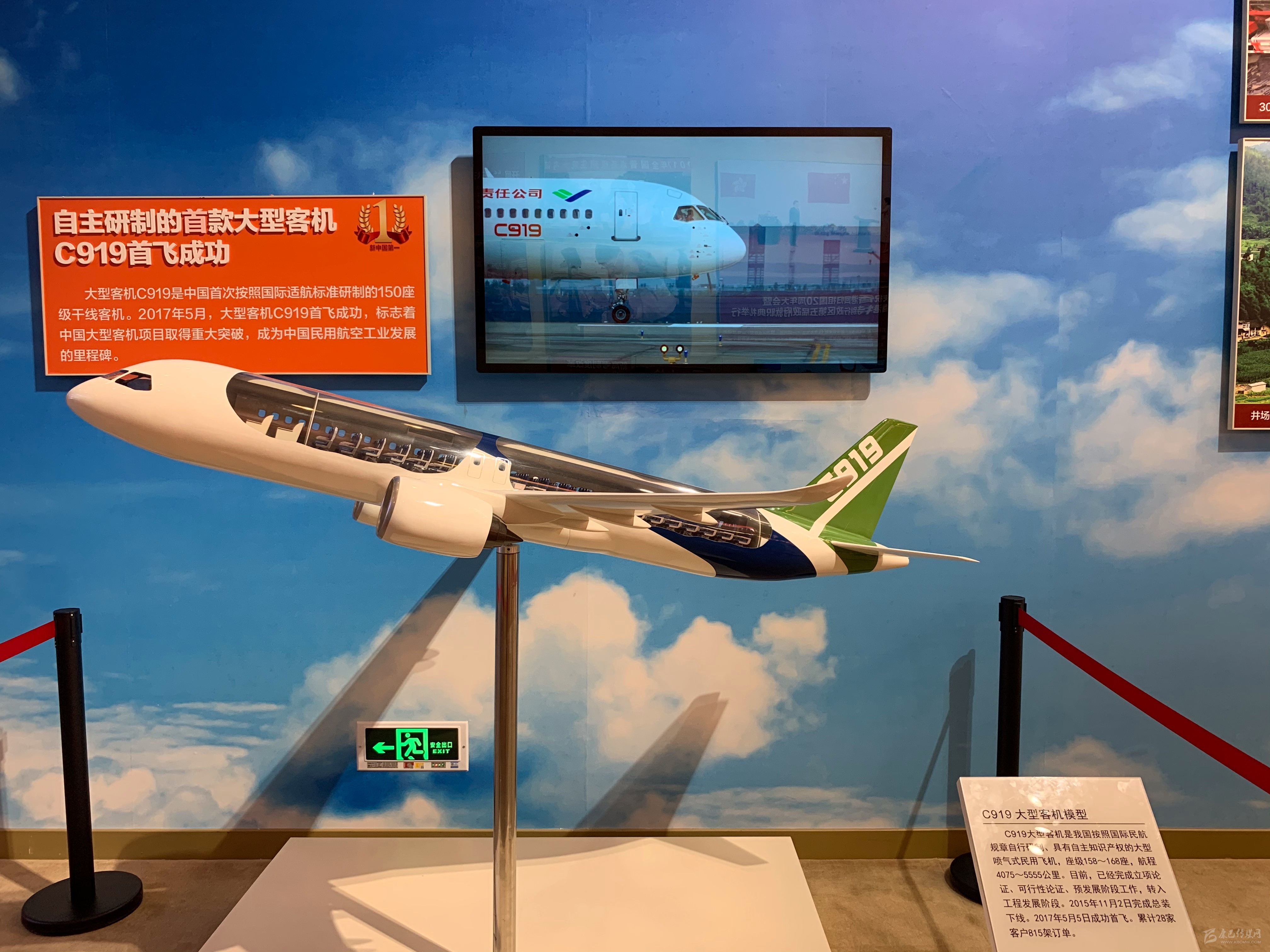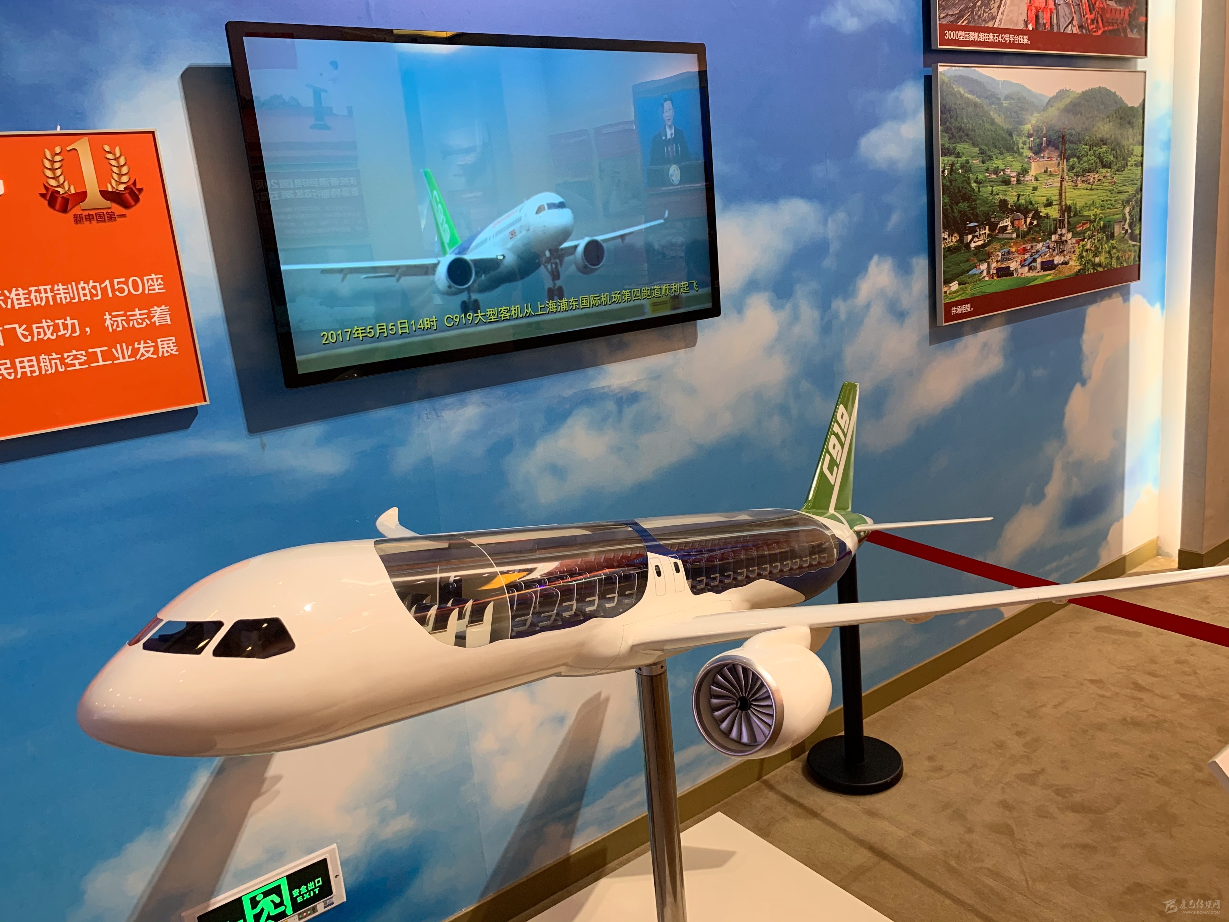 在2017年展區(qū),C919大飛機(jī)模型,配合解說圖片以及總裝下線當(dāng)日的視頻展出。