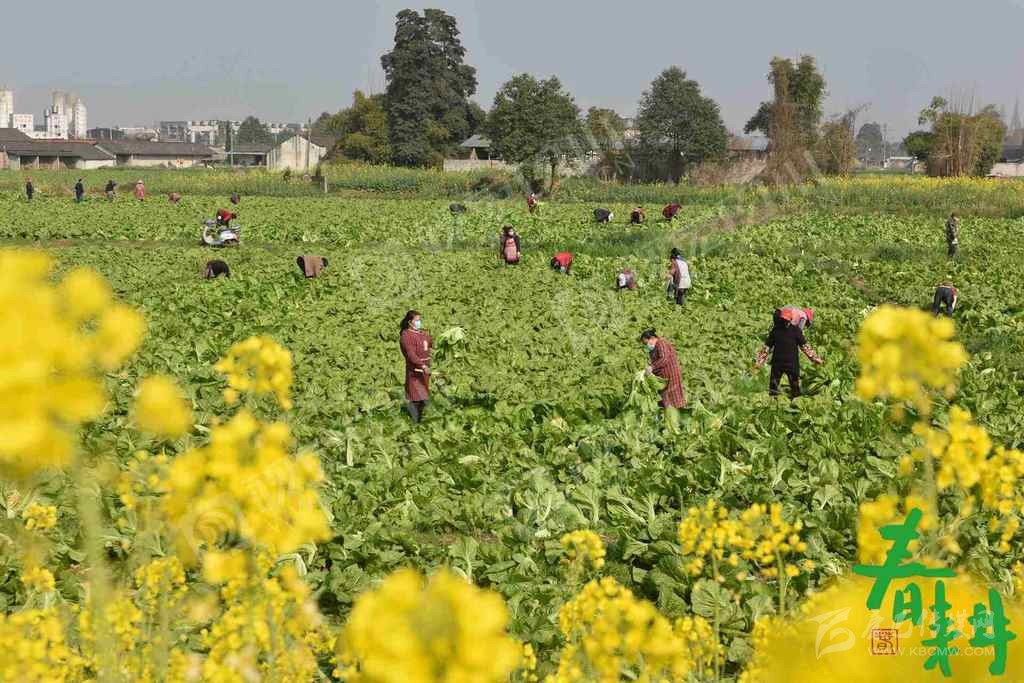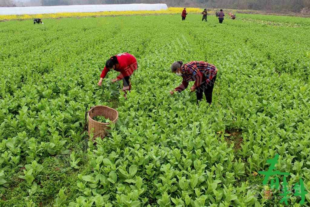內江市東興區(qū)白合鎮(zhèn)楊林村,當地村民趁著大好春光采摘菜心。