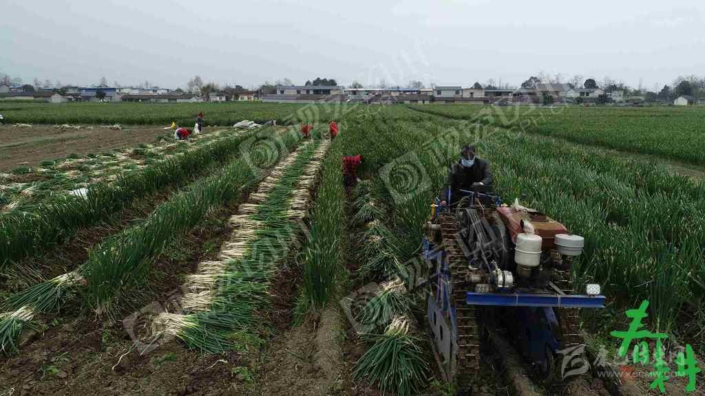 綿竹市富新鎮(zhèn)吉兆村14組,厚富種植專業(yè)合作社社員把大蔥收獲機采收后的大蔥打捆,以便后騰地種植蔬菜蓮花白。