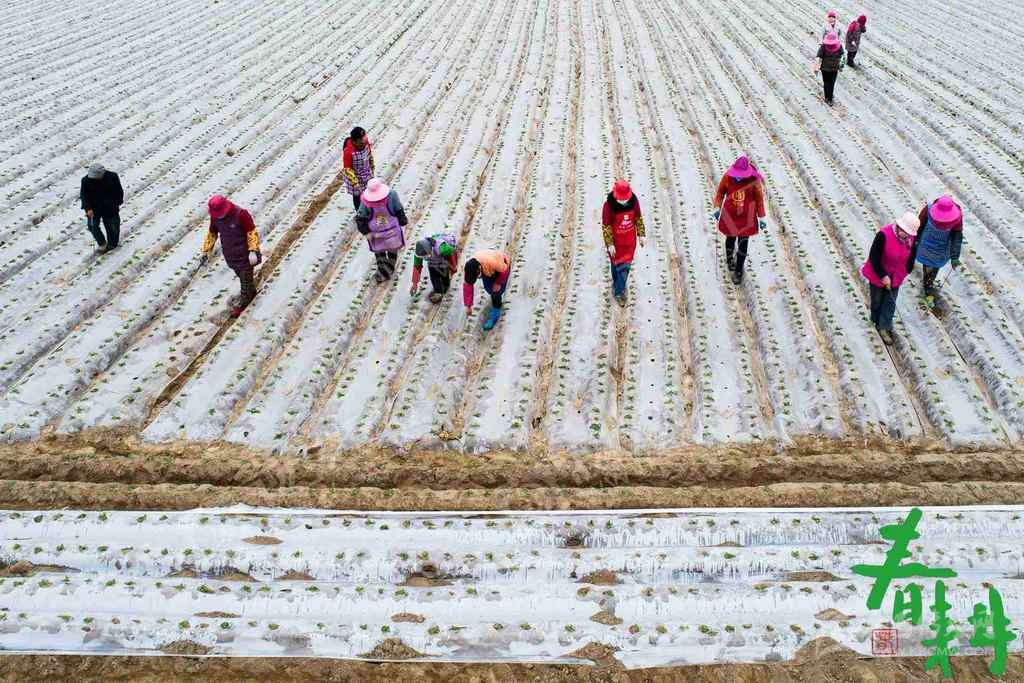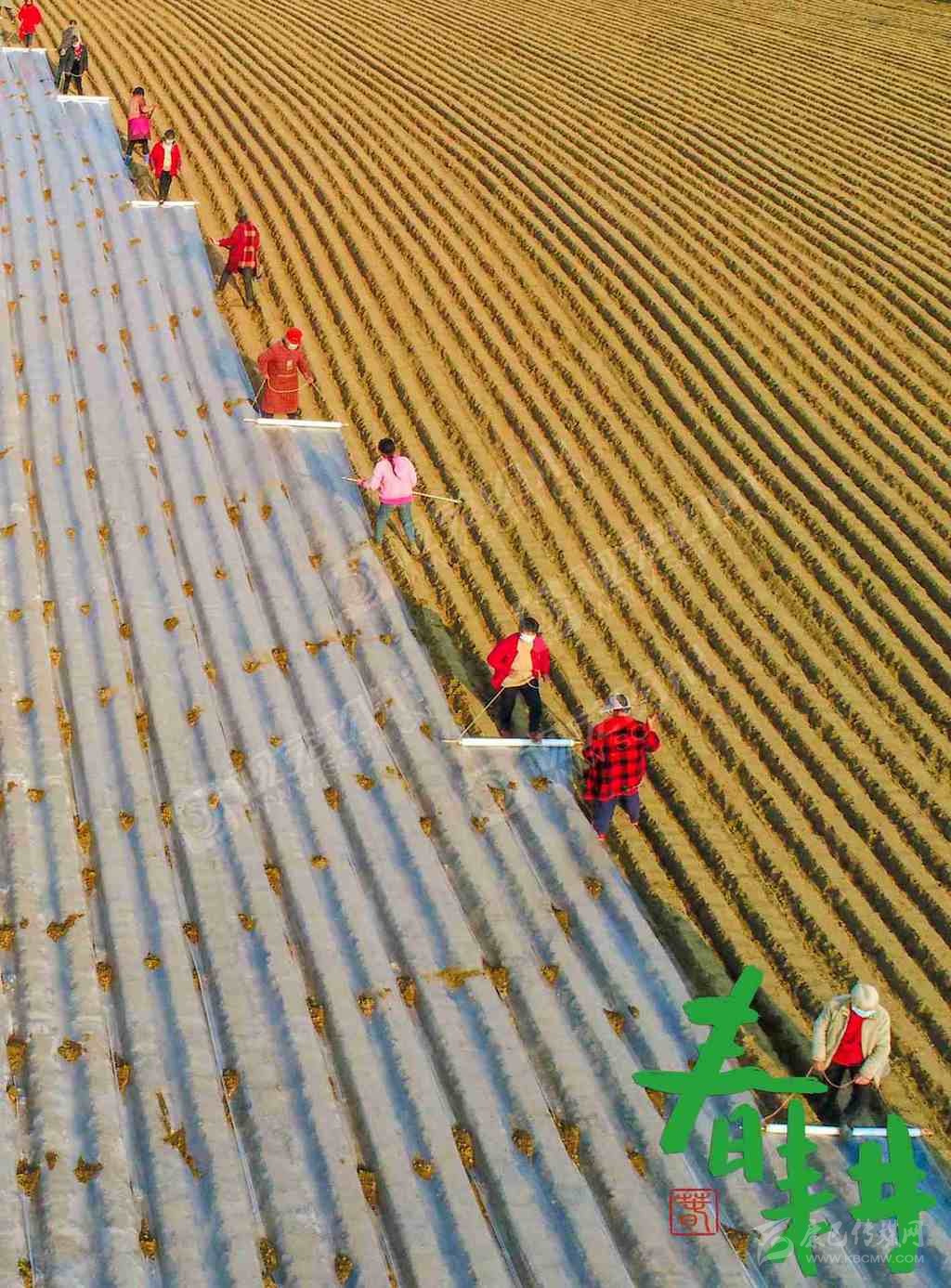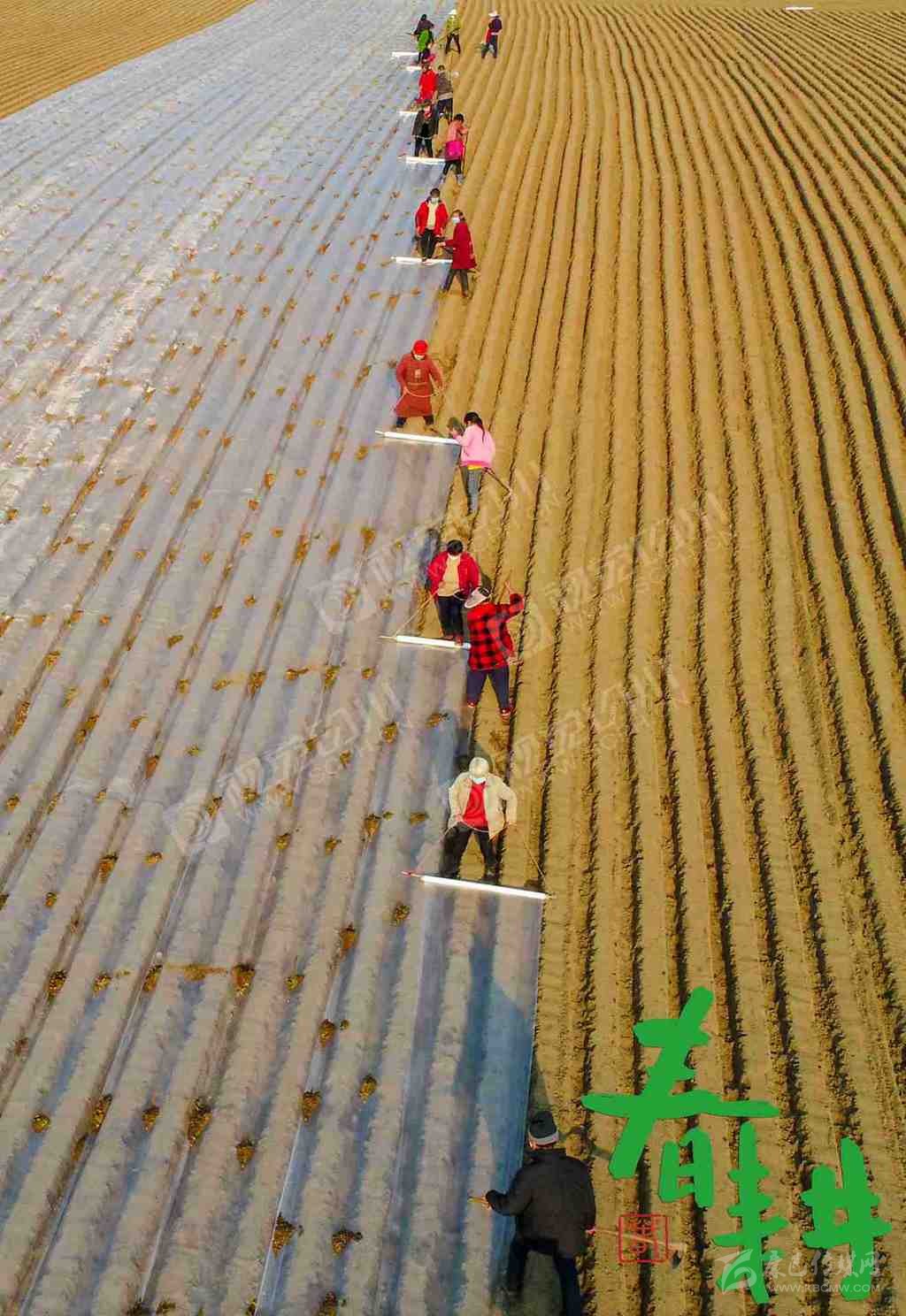 射洪市沱牌鎮(zhèn)桑樹林村,戴著口罩的農戶正在地里播種、蓋膜。
