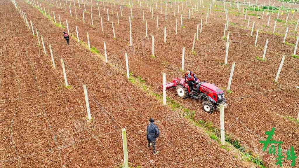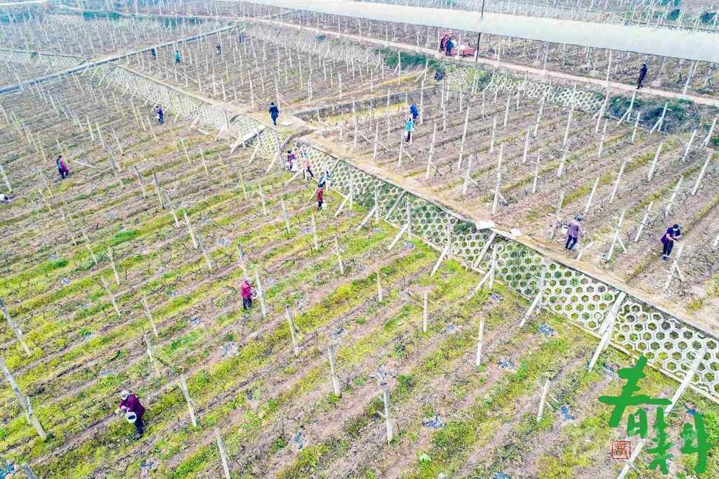 巴中市恩陽區(qū)上八廟鎮(zhèn)安居村的葡萄產業(yè)園里,產業(yè)員工佩戴口罩,分散在產業(yè)園里施肥。
