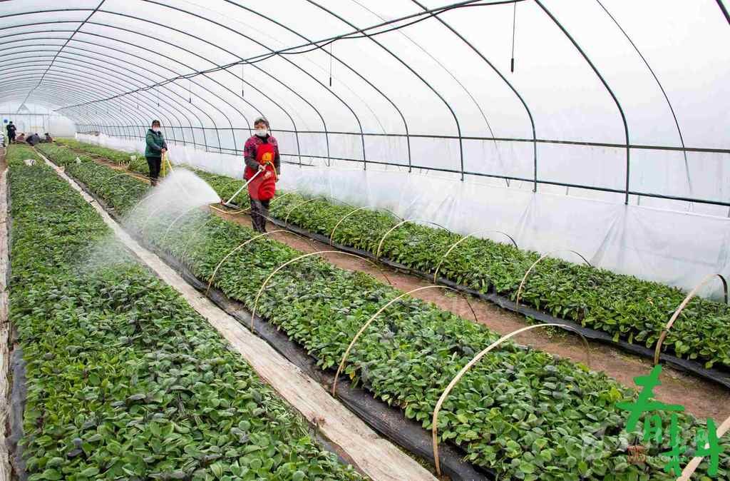 廣安市廣安區(qū)大龍鎮(zhèn)自力村菜農在育苗大棚給苗床澆水。