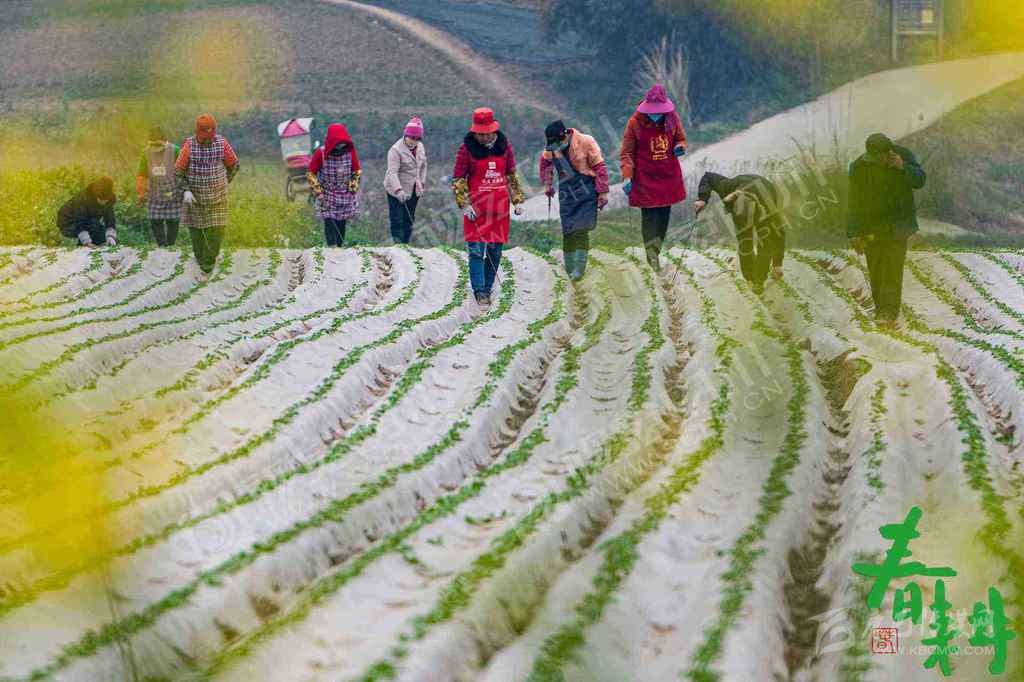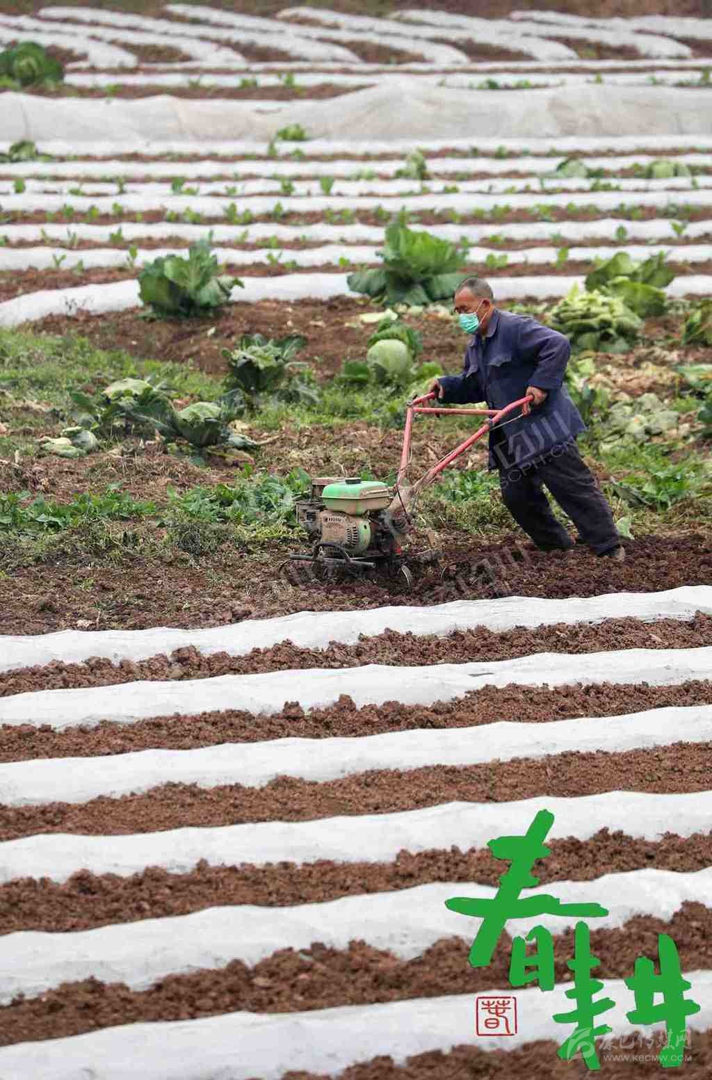 眉山市東坡區(qū)松江鎮(zhèn)山壩村村民在地里忙春耕春種。