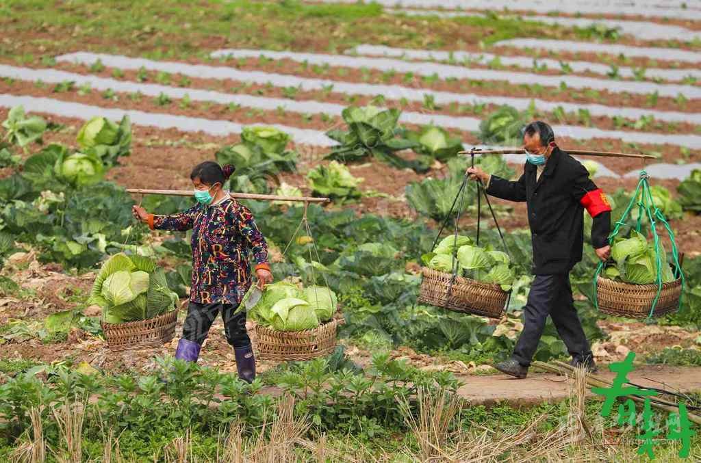 廣安市廣安區(qū)大龍鎮(zhèn)光明村村民在甘藍地里春管除草。
