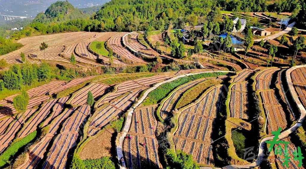 南江縣楊壩鎮(zhèn)組織的勞動力在柏林村新開墾的茶梯地開溝理廂準備栽植茶苗。