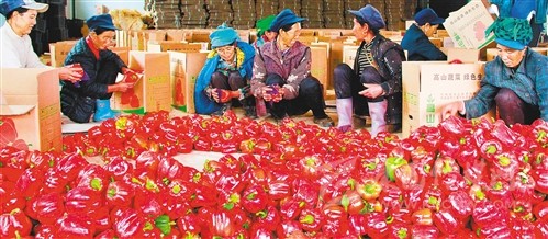 ?布拖縣拉達鄉(xiāng)村民在分揀高寒大棚蔬菜。當?shù)乜堪l(fā)展現(xiàn)代農(nóng)業(yè),走出了一條深度貧困地區(qū)增收致富的新路子。 (攝于2019年9月)