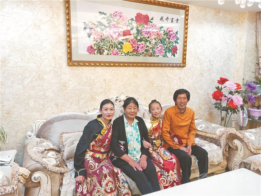 走進(jìn)澤仁塔新家中,只見(jiàn)嶄新的家具和現(xiàn)代化的家電一應(yīng)俱全,小康之家的氣息撲面而來(lái)?!啊畤}噠熱’(藏語(yǔ),意為‘很好’)!這兩年,生活發(fā)生了喜人的變化,感謝黨,感謝政府!”說(shuō)起自己的新家新生活,身穿藏族傳統(tǒng)服飾的澤仁塔新欣喜地豎起大拇指。