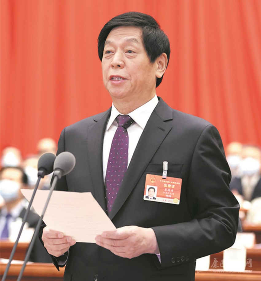 大會主席團常務(wù)主席、執(zhí)行主席栗戰(zhàn)書主持大會。新華社 發(fā)