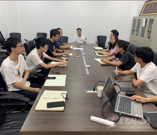 指導(dǎo)老師王忠海和團(tuán)隊成員在討論