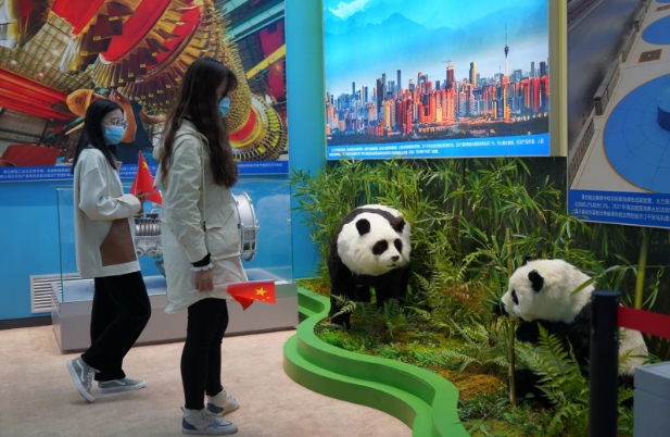 “特別喜歡這里的熊貓,這是本次展覽中最棒的打卡點!”10月7日,國慶假期最后一天,在北京展覽館“奮進(jìn)新時代”主題成就展四川展區(qū),仿照中國大熊貓保護(hù)研究中心雅安基地兩只大熊貓制作的場景,吸引了首都經(jīng)貿(mào)大學(xué)會計專業(yè)大二學(xué)生周妍合影。