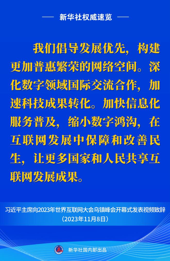 新華社權(quán)威速覽丨習(xí)近平主席向2023年世界互聯(lián)網(wǎng)大會(huì)烏鎮(zhèn)峰會(huì)開(kāi)幕式視頻致辭金句