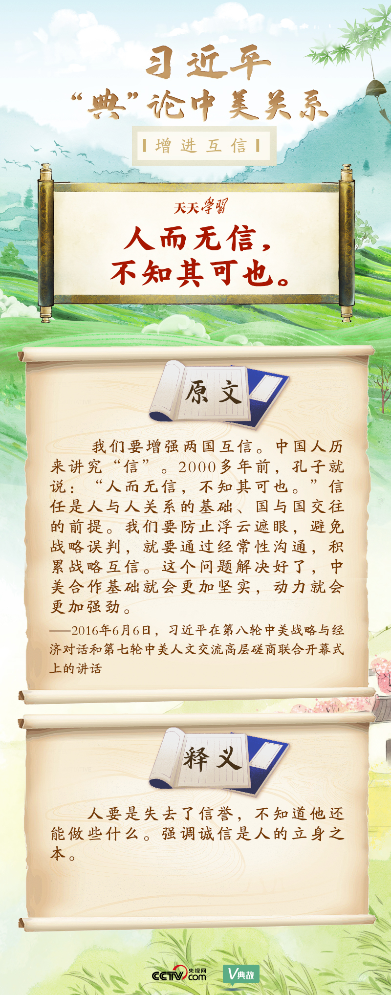 黨的十八大以來(lái),習(xí)近平主席就中美關(guān)系發(fā)表了一系列重要講話。他站在時(shí)代高度分析、研判中美關(guān)系現(xiàn)狀及發(fā)展趨勢(shì),并引經(jīng)據(jù)典為發(fā)展中美關(guān)系指出正確方向。這些論述蘊(yùn)含深刻的戰(zhàn)略思維和政治智慧,具有重大現(xiàn)實(shí)意義和深遠(yuǎn)歷史意義。央視網(wǎng)《天天學(xué)習(xí)》與您一起深刻領(lǐng)會(huì)。