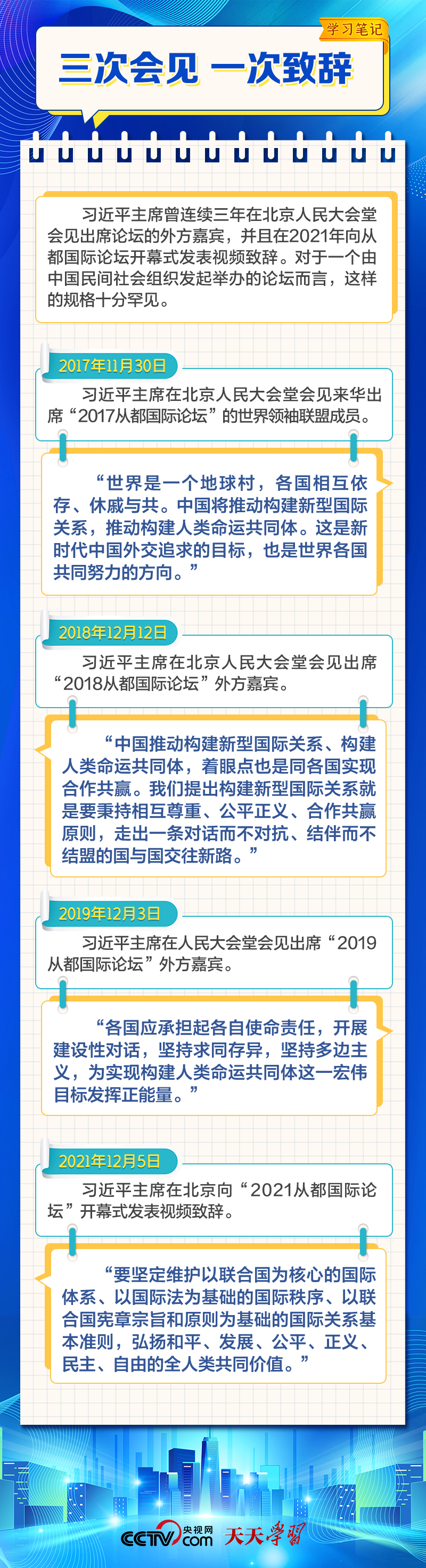 天天學(xué)習(xí)12月4日,習(xí)近平主席在致“2023從都國際論壇”的賀信中強(qiáng)調(diào),面對前所未有的世界之變、時代之變和歷史之變,人類社會必須團(tuán)結(jié)起來,堅持互學(xué)互鑒、開放包容、合作共贏,弘揚(yáng)全人類共同價值,共同建設(shè)更加美好的世界。