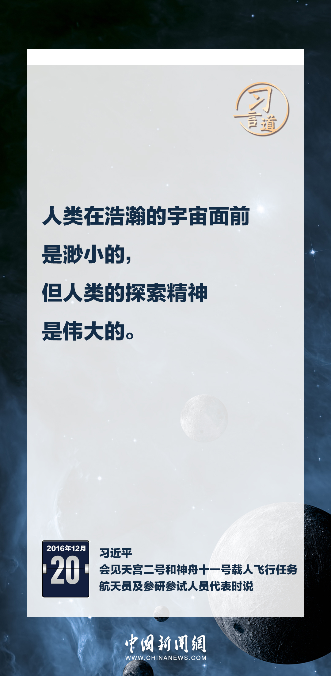 建設(shè)航天強(qiáng)國要靠一代代人接續(xù)奮斗。在不同場合,習(xí)近平總書記頻頻提及航天精神,激勵一代代中國人不斷奮進(jìn)、筑夢太空。