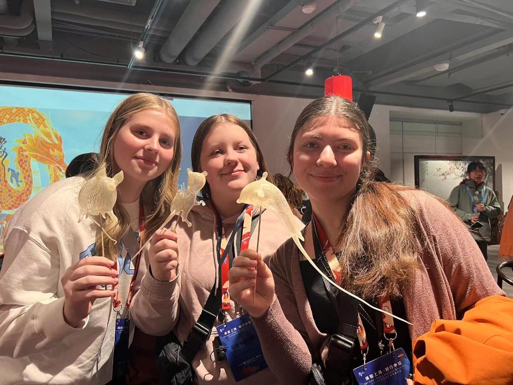 ??1月下旬,馬斯卡廷中學訪華代表團學生在上海體驗民俗活動。(受訪者供圖)