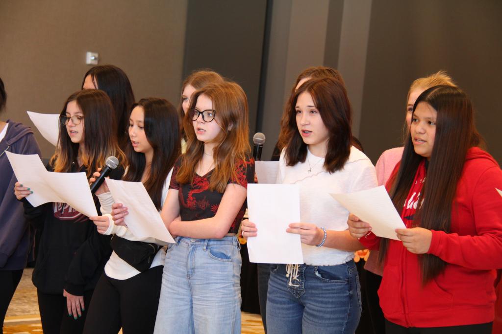 ??2月9日,在馬斯卡廷,馬斯卡廷中學學生在演唱中文歌曲。